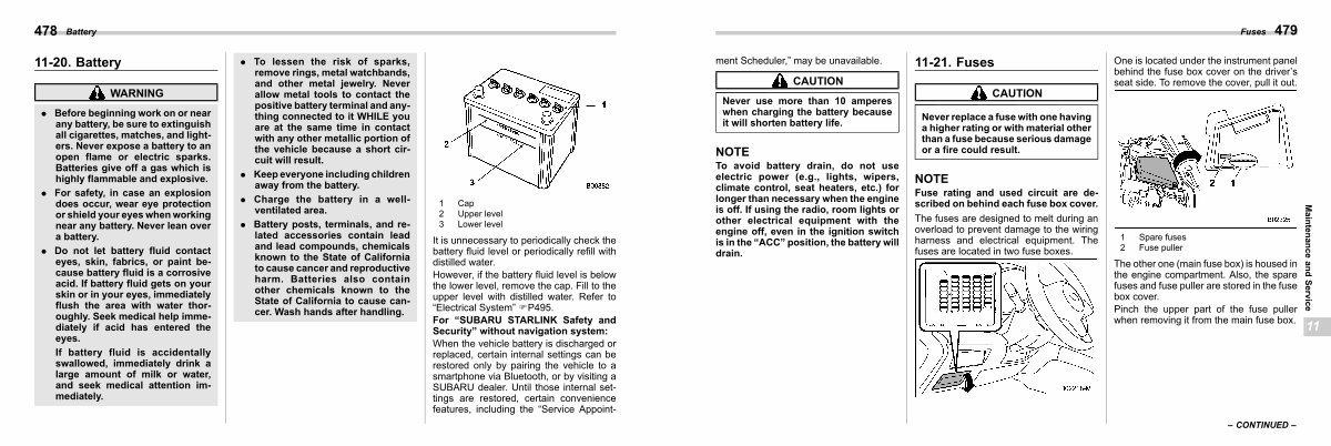 When the vehicle battery is discharged or replaced, certain internal settings can be restored only by pairing the vehicle to a smartphone via Bluetooth, or by visiting a SUBARU dealer. Until those internal settings are restored, certain convenience features, including the“ Service Appoint-