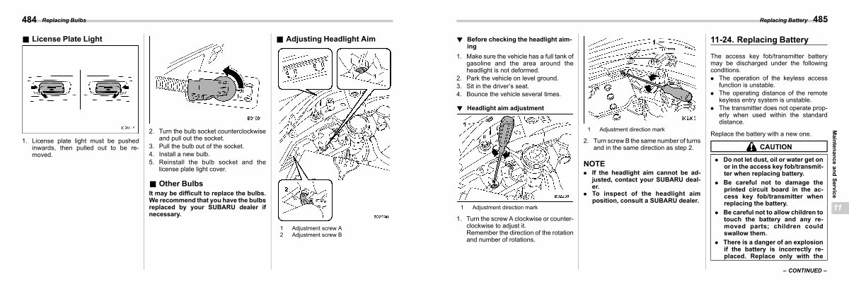 . If the headlight aim cannot be adjusted, contact your SUBARU dealer.