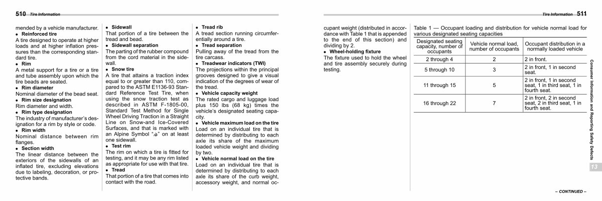 . Vehicle normal load on the tire Load on an individual tire that is determined by distributing to each axle its share of the curb weight, accessory weight, and normal oc-