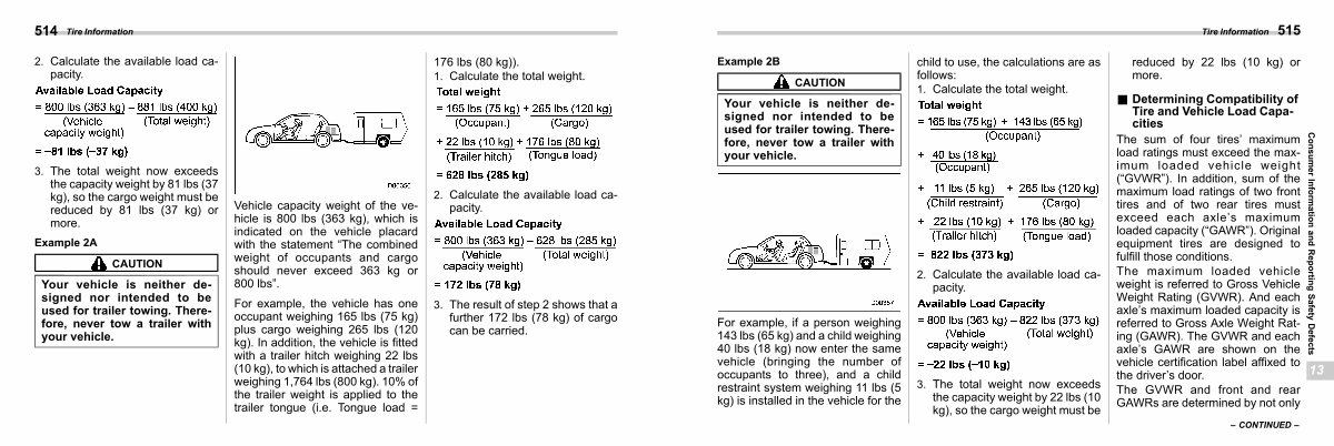 For example, the vehicle has one occupant weighing 165 lbs( 75 kg) plus cargo weighing 265 lbs( 120 kg). In addition, the vehicle is fitted with a trailer hitch weighing 22 lbs( 10 kg), to which is attached a trailer weighing 1,764 lbs( 800 kg). 10 % of the trailer weight is applied to the trailer tongue( i. e. Tongue load =
