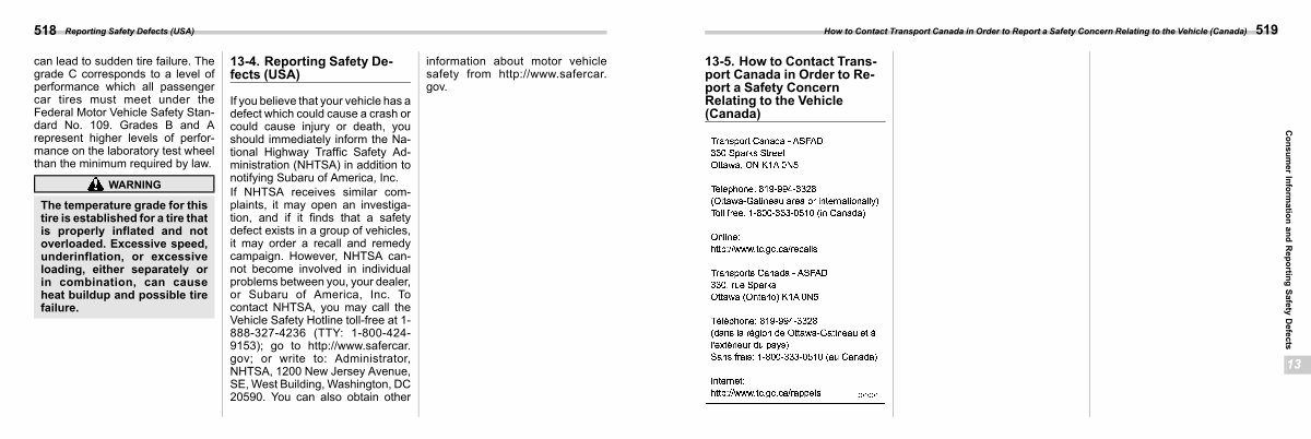 13-5. How to Contact Transport Canada in Order to Report a Safety Concern Relating to the Vehicle( Canada) s13cf