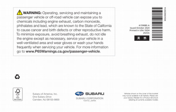 Vehicles shown on the cover of this booklet may not be available in all markets. Please see your Subaru Retailer for a Product Brochure detailing all currently available models.