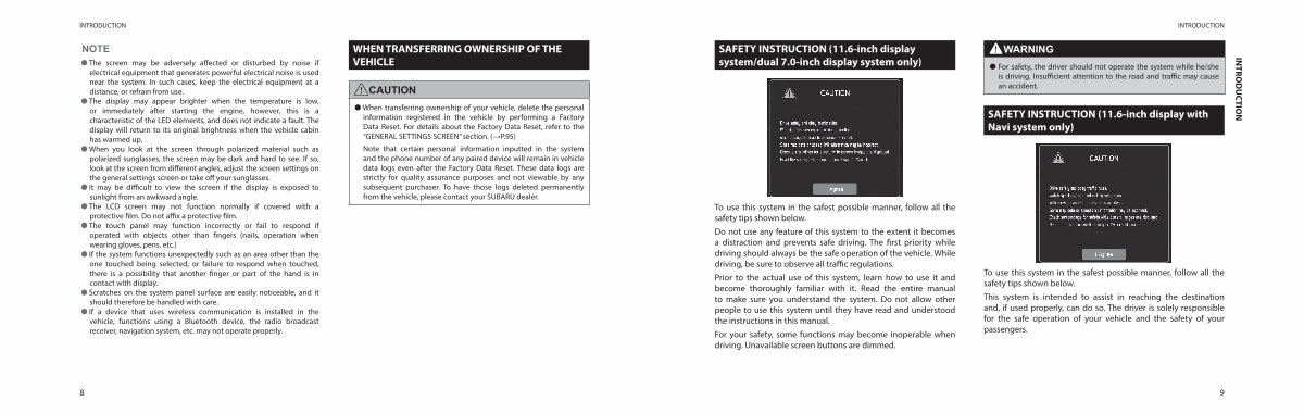 SAFETY INSTRUCTION( 11.6-inch display system / dual 7.0-inch display system only)
