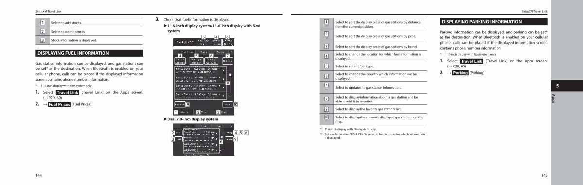 Gas station information can be displayed, and gas stations can be set * as the destination. When Bluetooth is enabled on your cellular phone, calls can be placed if the displayed information screen contains phone number information.