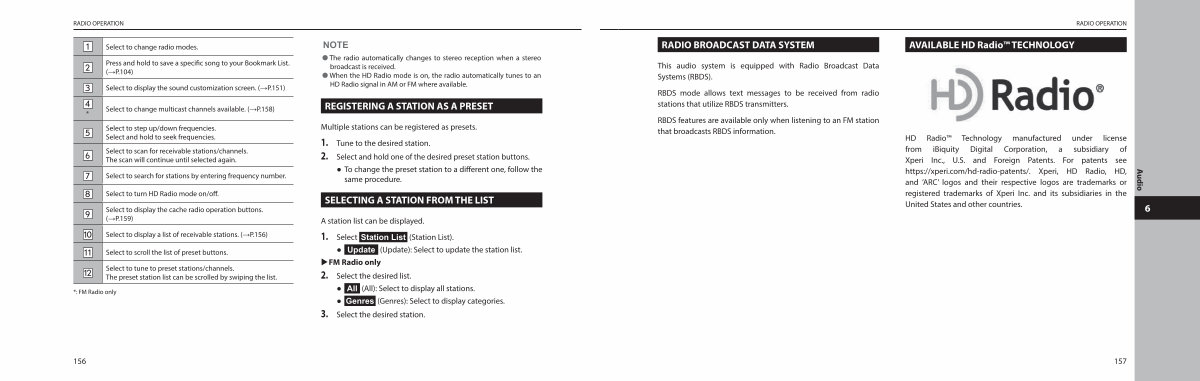 Select to search for stations by entering frequency number. Select to turn HD Radio mode on / off.