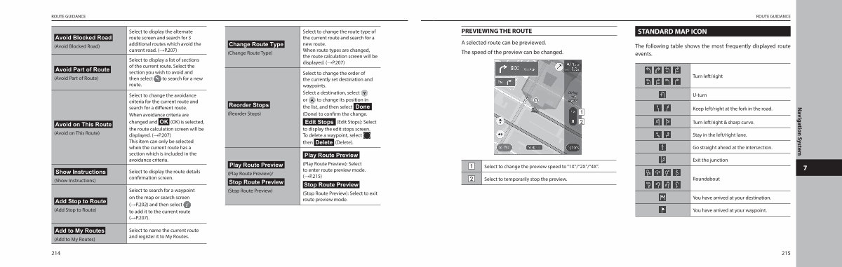 PREVIEWING THE ROUTE A selected route can be previewed. The speed of the preview can be changed.
