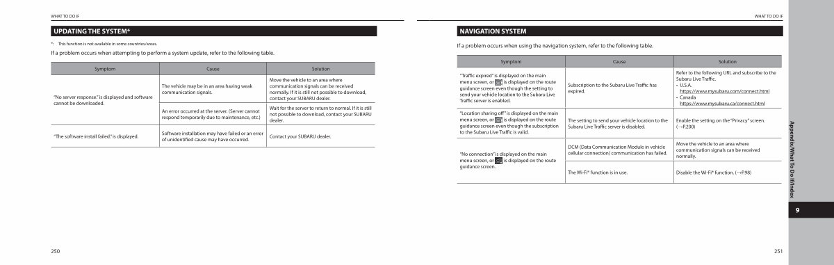 “ Traffic expired” is displayed on the main menu screen, or is displayed on the route guidance screen even though the setting to send your vehicle location to the Subaru Live Traffic server is enabled.