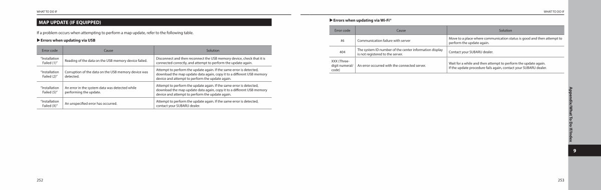 If a problem occurs when attempting to perform a map update, refer to the following table �Errors when updating via USB