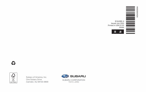 Subaru of America, Inc. One Subaru Drive Camden, NJ 08103-9800