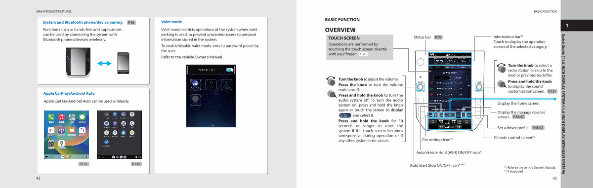 Operations are performed by touching the touch screen directly with your finger. P. 70