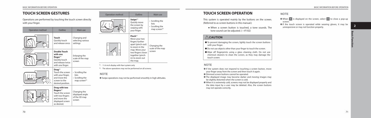 � If the system does not respond to touching a screen button, move your finger away from the screen and then touch it again. � Dimmed screen buttons cannot be operated. � The displayed image may become darker and moving images may be slightly distorted when the screen is cold.