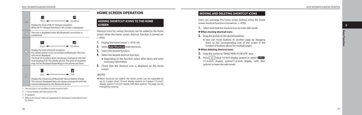 Users can rearrange the home screen buttons when the home screen shortcut function is turned on.( �P. 95)