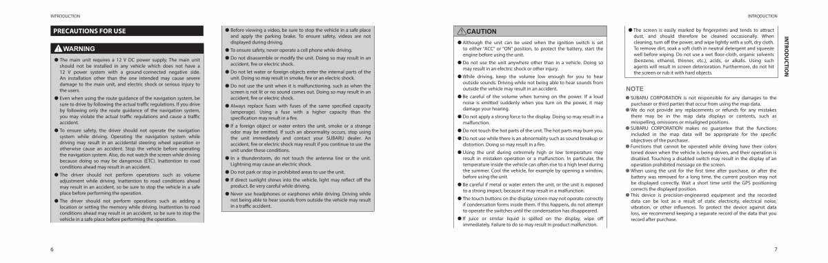 � The main unit requires a 12 V DC power supply. The main unit should not be installed in any vehicle which does not have a 12 V power system with a ground-connected negative side. An installation other than the one intended may cause severe damage to the main unit, and electric shock or serious injury to the users.