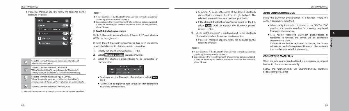 � Depending on the type of Bluetooth phone / device being connected, it may be necessary to perform additional steps on the Bluetooth phone / device.
