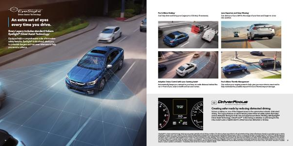 Subaru is taking on one of the biggest issues in the automotive industry : distracted driving . The Legacy features an award-winning state-of-the-art safety system that helps reduce distracted driving for both new and experienced drivers . Working with EyeSight ® Driver Assist Technology , 1 DriverFocus ® 2 , 3 is like having an attentive co-pilot along for the ride , ready to give a helpful alert if a driver becomes distracted or drowsy .