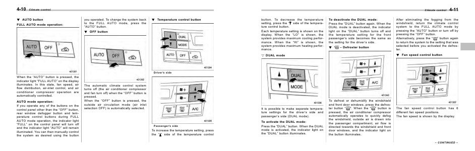 and front door windows, press the defroster button “ ”. When the “ ” button is