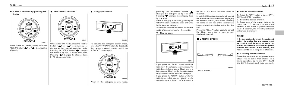 the category SCAN mode, the radio scans