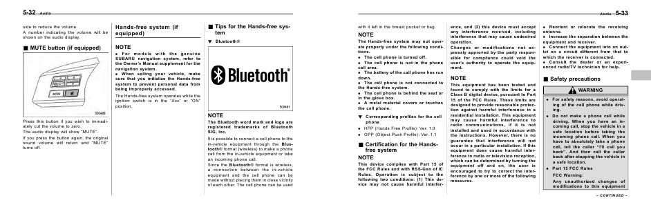 & Tips for the Hands-free system