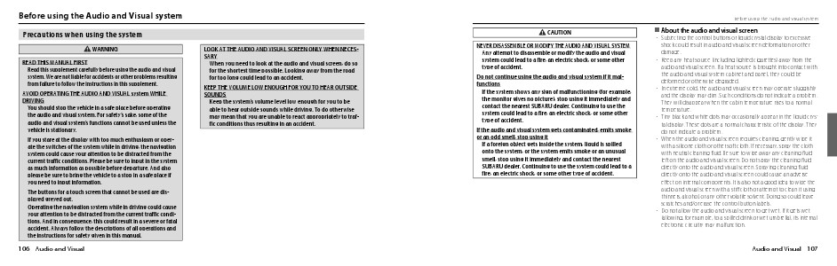 Before using the Audio and Visual system