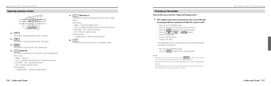 Basic operation of the Audio and Visual system