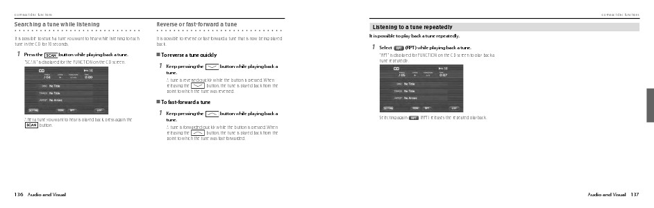 "RPT" is displayed for FUNCTION on the CD screen to play back a