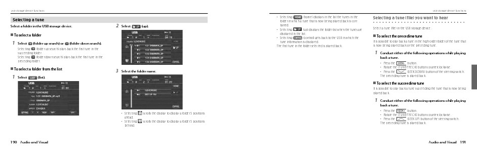 (folder down search) plays back the first tune in the