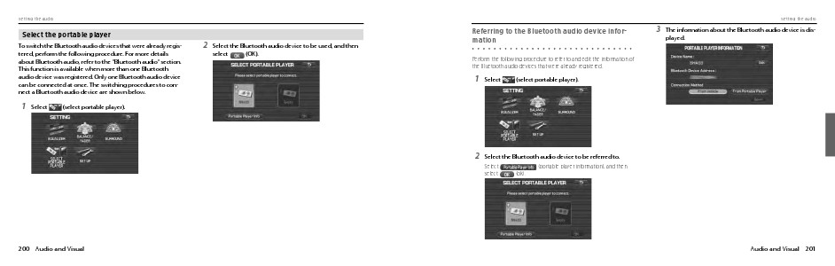 To switch the Bluetooth audio devices that were already registered, perform the following procedure. For more details