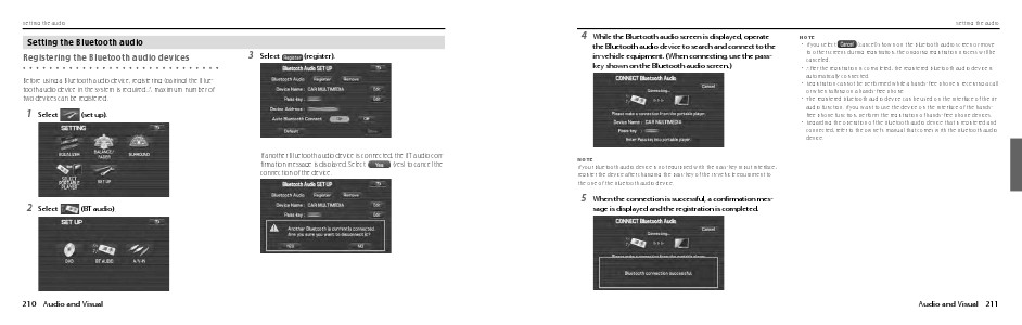 • The registered Bluetooth audio device can be used on the interface of the BT