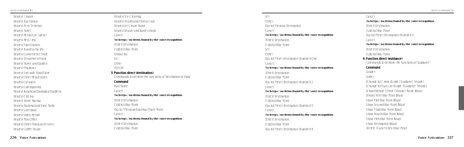 Commands to perform the functions of "destination setting"
