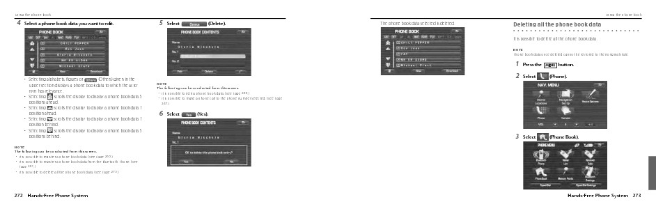• It is possible to delete all the phone book data. (See Page 273.)