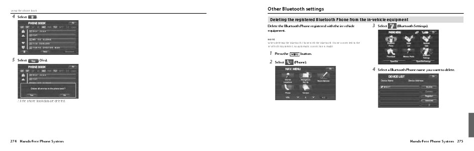 Deleting the registered Bluetooth Phone from the in-vehicle equipment