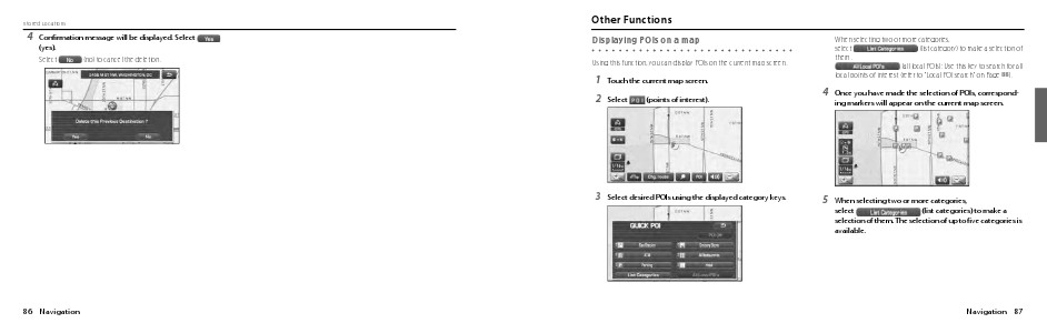 Stored Locations 4 Confirmation message will be displayed. Select (yes). Select 86 Navigation (no) to cancel the deletion.