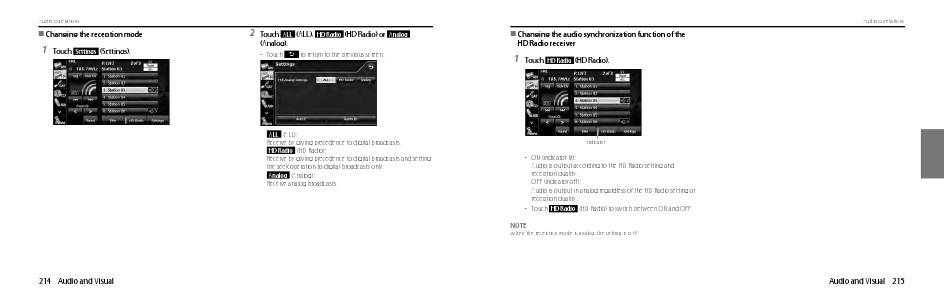 Touch ALL (ALL), HD Radio (HD Radio) or Analog