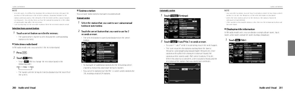 • You can select a station in a one-touch operation simply by touching a preset