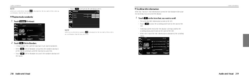 • Touch Off (Off ) in Random to cancel the random playback of