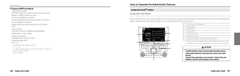 random playback mode. Note that you cannot connect an iPod cable and USB at the same time.