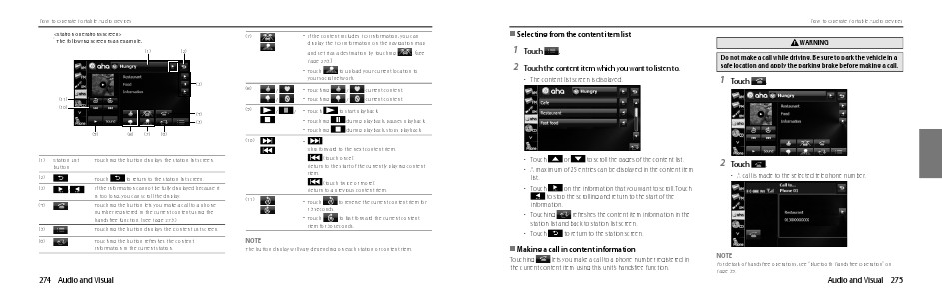 ■ Making a call in content information