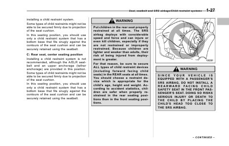 Seat, seatbelt and SRS airbags/Child restraint systems