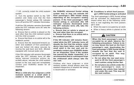 small adult in the rear seat and immediately contact your SUBARU dealer