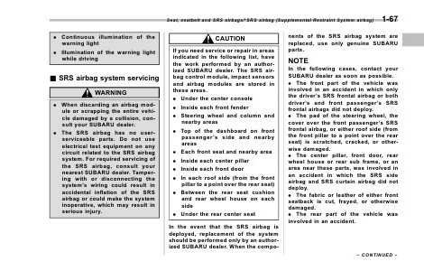 the work performed by an authorized SUBARU dealer. The SRS airbag control module, impact sensors