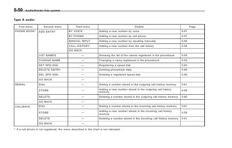 *: If a cell phone is not registered, the menu described in the chart is not indicated.