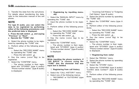4. Select the phone number to be registered by operating the “TUNE” dial.