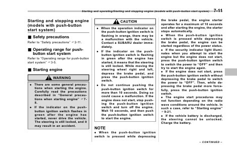 Starting and operating/Starting and stopping engine (models with push–button start system)