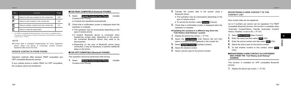 Operation methods differ between PBAP compatible and