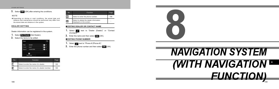 8 NAVIGATION SYSTEM (WITH NAVIGATION FUNCTION) 189 8