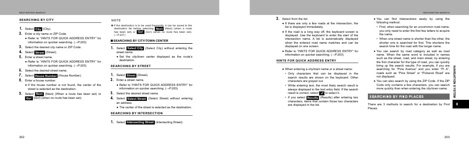 Refer to “HINTS FOR QUICK ADDRESS ENTRY” for