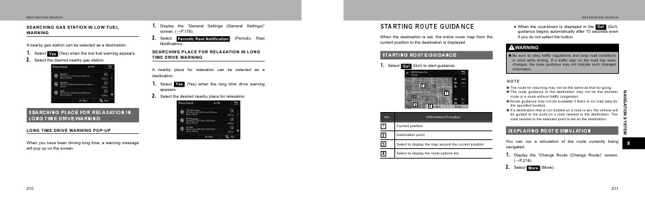 A nearby place for relaxation can be selected as a