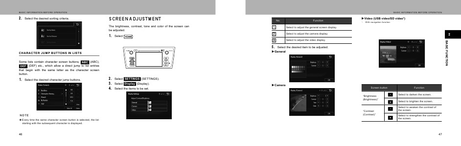 The brightness, contrast, tone and color of the screen can