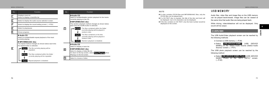 The USB Audio/Video playback screen can be reached by