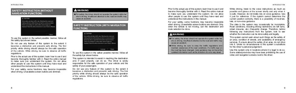For safety, the driver should not operate the system while he/